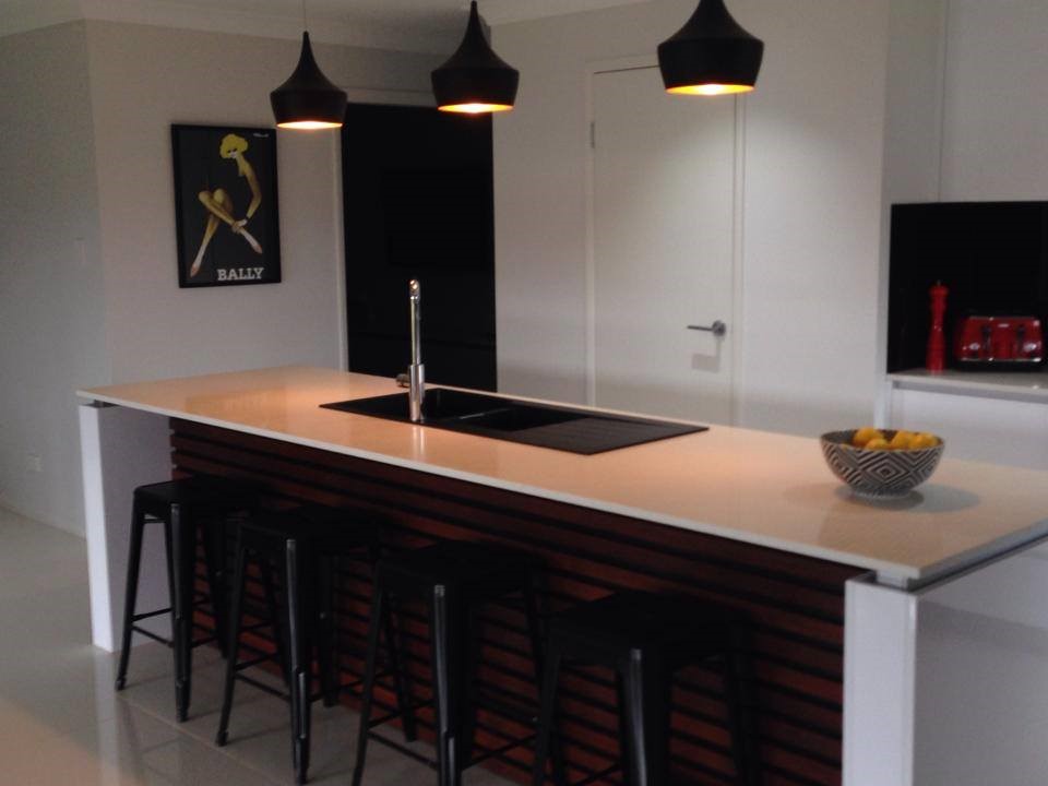 Walker Homes have just recently completed a new home in Kleinton QLD (Highfields) which featured four bedrooms, large family/dining, media room, study and a reasonably large alfresco area. The house features very modern styling. The front facade features dark coloured bricks and crisp white render with the added aspect of a beautifully stained custom front door, featuring one of our custom designed roller doors. Just on 270sqm this home was quality built featuring Caesar stone bench tops in all wet areas and Kitchen.
